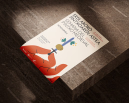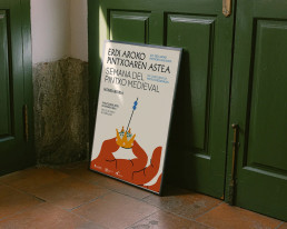 El póster se compone principalmente con una tipografía inspirada en Albertus Magnus, uno de los filósofos medievales más conocidos. Es una fuente clara y con mucha personalidad, que nos recuerda a la escritura tan característica de la época.