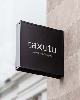 El concepto del rediseño del logotipo de Taxutu trata de expresar, de manera clara y contemporánea, el significado de su nombre. En euskera, taxutu significa arreglar o modelar, términos que reflejan tanto la labor manual del terapeuta como el proceso de recuperar el equilibrio corporal.